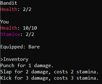 In battle, the user can view their inventory. They can equip weapons, armor, and use potions they have acquired, giving them different options to deal with their enemy.