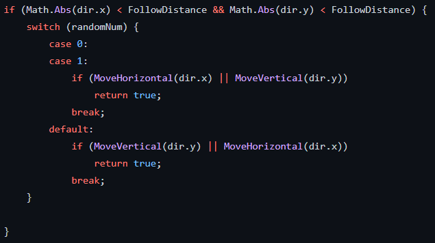 The artificial-intelligence contains a base class which all A.I. inherits from. This class contains overridable methods such as ‘CanMove’ which determines if the A.I. can move to a specified position. This allows for unique behavior, where some A.I. can move to certain positions which are unreachable by other A.I. or maybe even the user.