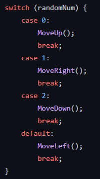 The UnitRandomControls picks a random direction to move. An integer with range of [0, 4) (min is inclusive, max is exclusive), is picked from randomly, and the direction goes clockwise in ascending order: up (0), right (1), down (2), left (3).